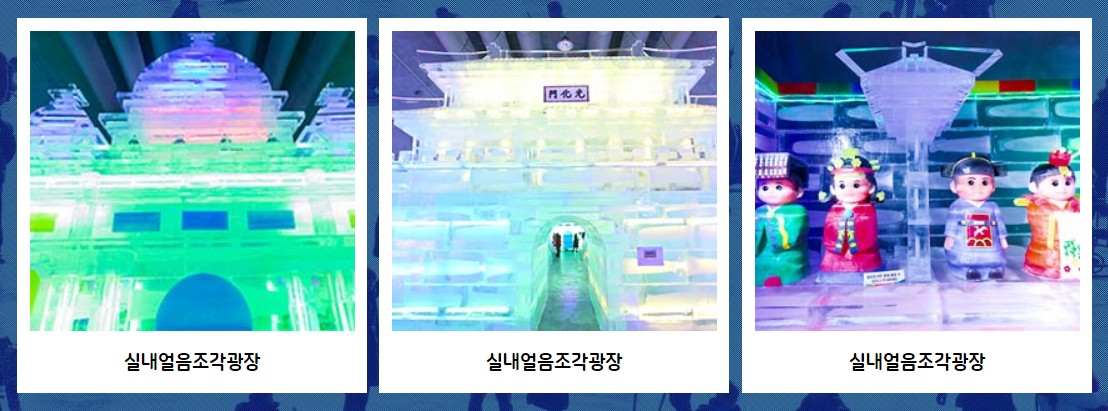 실내 얼음조각 광장은 화천읍 하리 서화산 다목적광장 내에서 오전 9시부터 밤 9시까지 운영된다고 합니다.